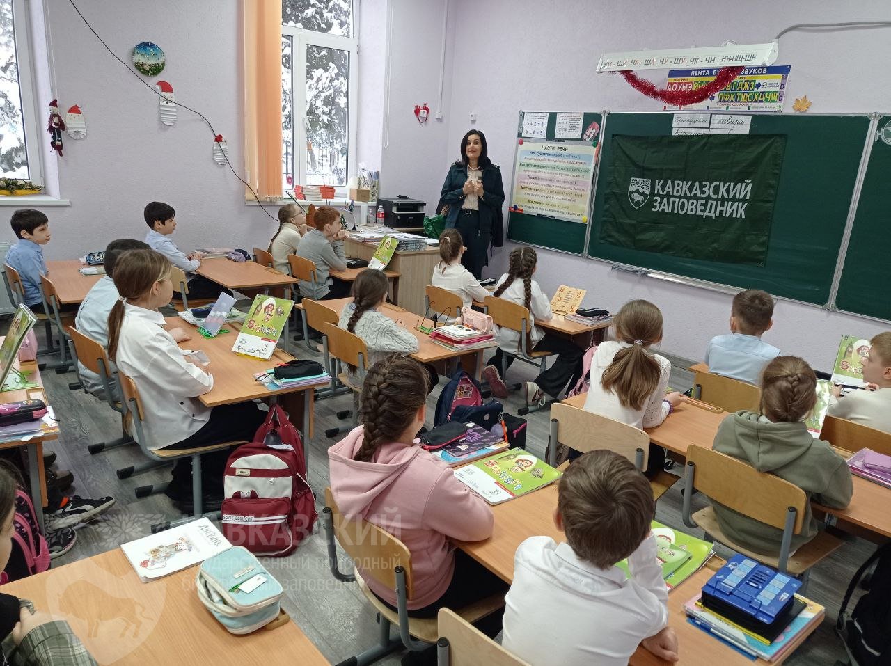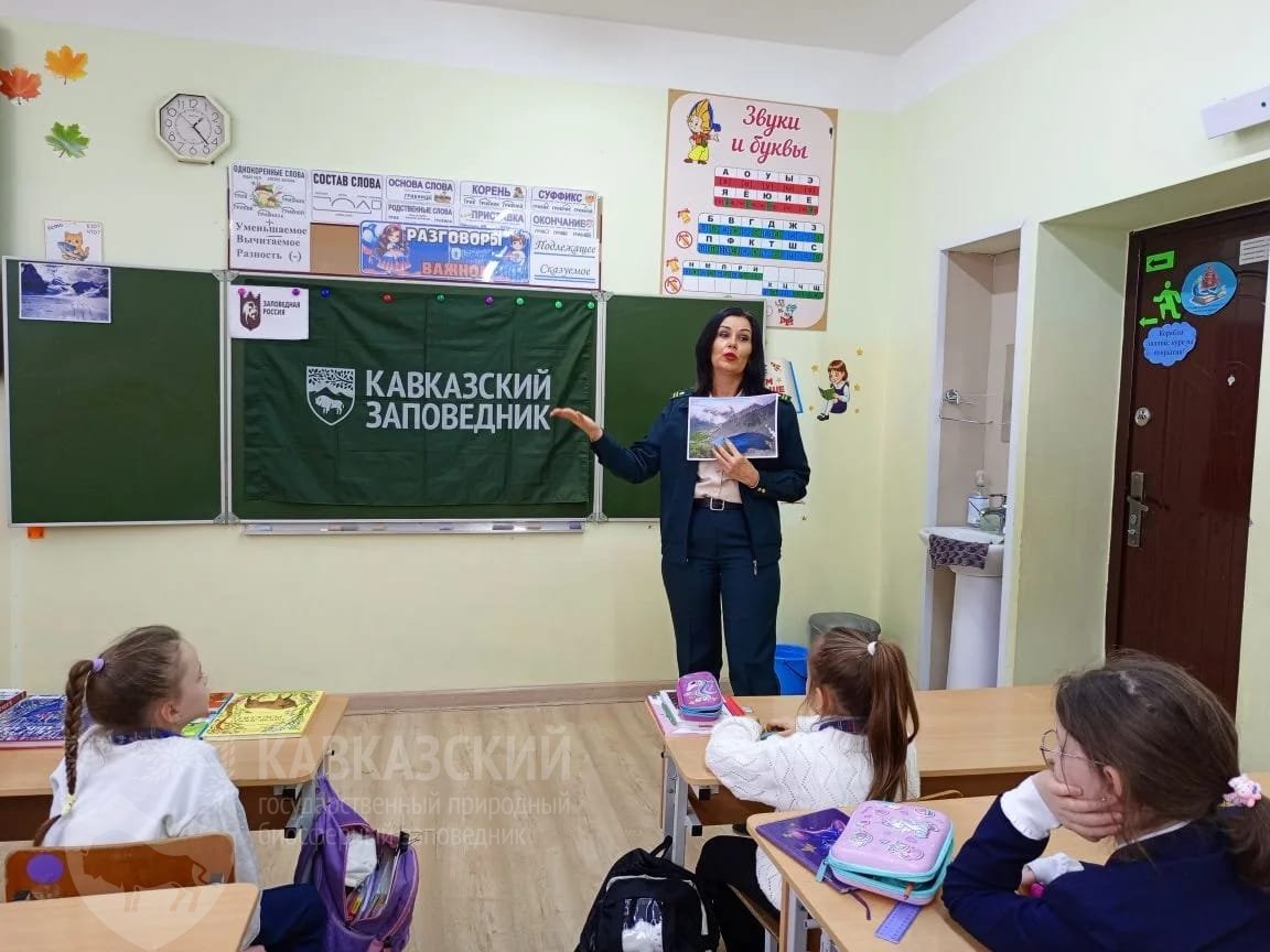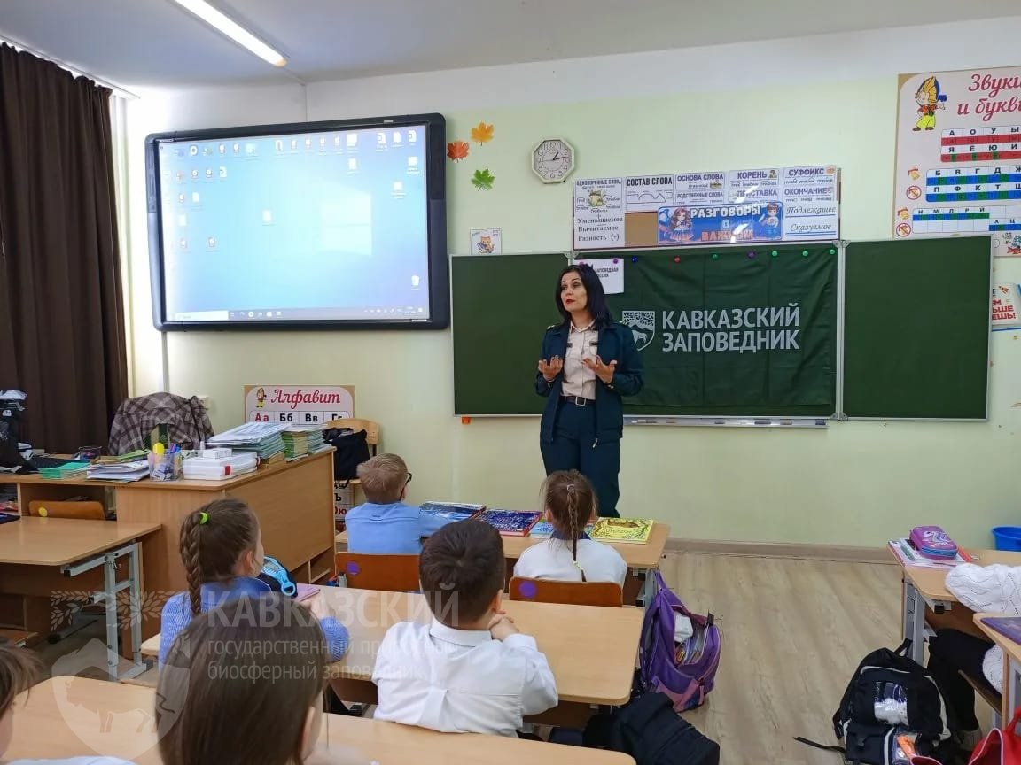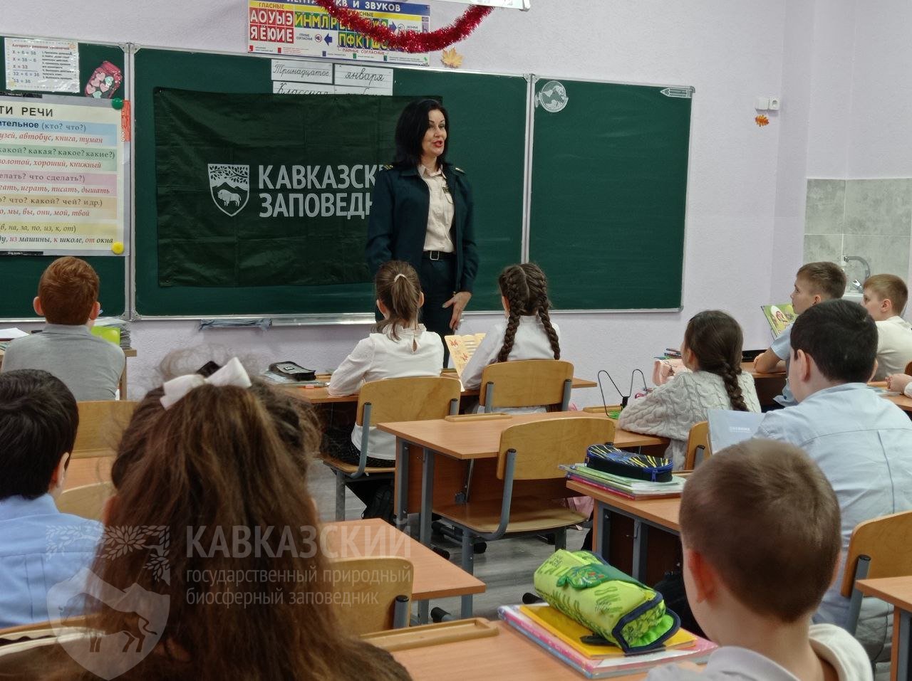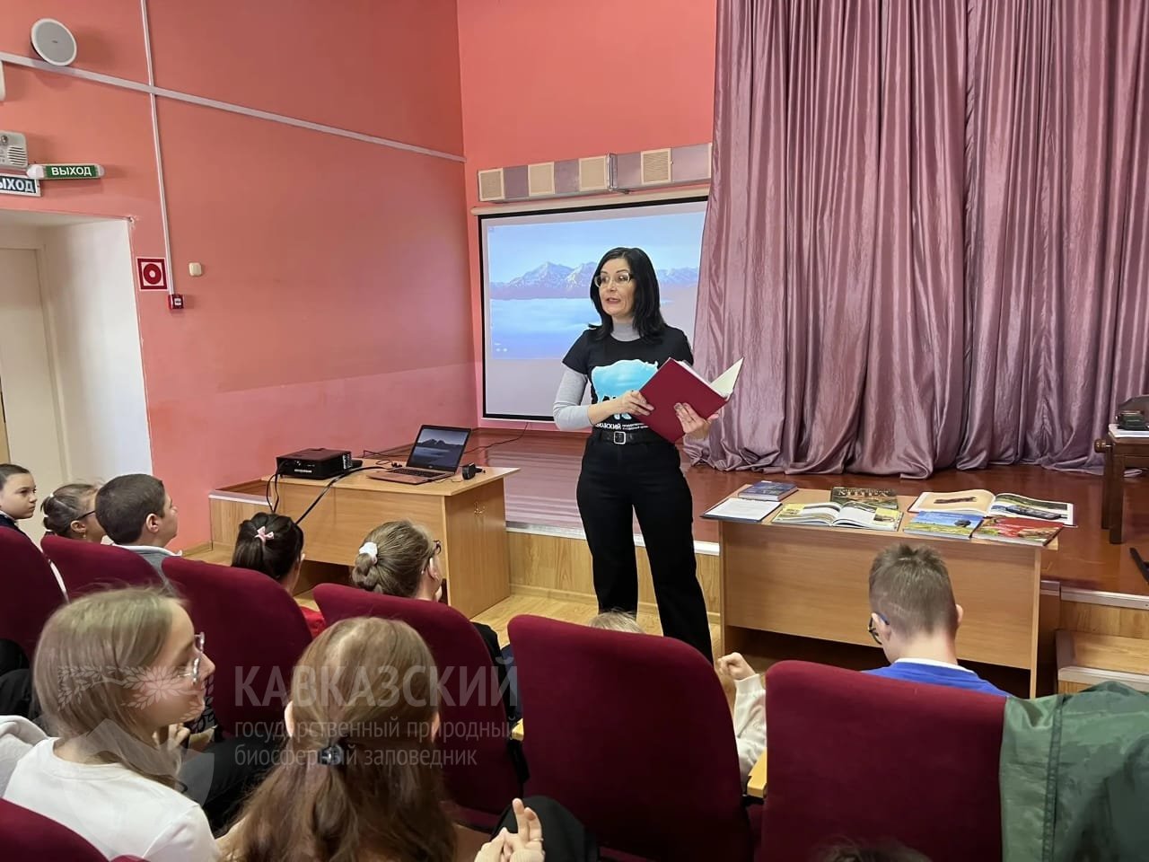 О первозданных природных богатствах нашей Родины - особо охраняемых территориях ученикам города Майкопа рассказала методист по экопросвещению Кавказского заповедника Валентина Куцая.