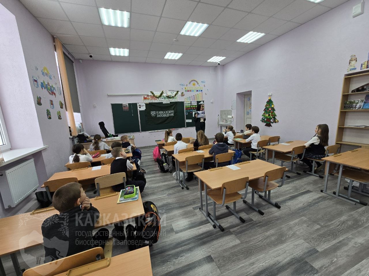 Ученики Средней школы №10 и Средней школы №7 стали участниками мероприятия «День заповедников и национальных парков». Ребята узнали какие особо охраняемые природные территории существуют, какой на них режим охраны, изучили правила пребывания на этих территориях. Многие участники мероприятия смогли поделиться своим опытом нахождения на экотропах региона. Познавательные викторины и ребусы об обитателях Кавказского заповедника очень понравились детям, играли командами, совещались и учились выбирать правильные варианты и решения. За победу получали памятные подарки от Кавказского заповедника.