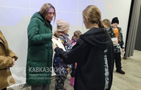 День начался с лекции-презентации «Кавказский заповедник: страницы истории». Участники совершили увлекательное путешествие во времени: от создания Великокняжеской «Кубанской охоты» до становления и развития современного биосферного заповедника. Это напомнило всем, как важен труд многих поколений энтузиастов для сохранения природы. Затем состоялся показ видеоролика «Заповедники России: что мы теряем и что ещё можно спасти». Он заставил задуматься о личной ответственности каждого за сохранение природного наследия не только в праздник, но и в повседневной жизни. Настоящей проверкой знаний наших гостей стала викторина «Заповедная игра». Участники с азартом отвечали на вопросы о флоре и фауне Кавказского заповедника. Этот формат не только проверил эрудицию, но и в игровой форме подарил множество новых интересных фактов. Также на протяжении всего дня работал творческий уголок «Раскрась и забери с собой». Дети и взрослые с вдохновением раскрашивали тематические рисунки с обитателями заповедника.