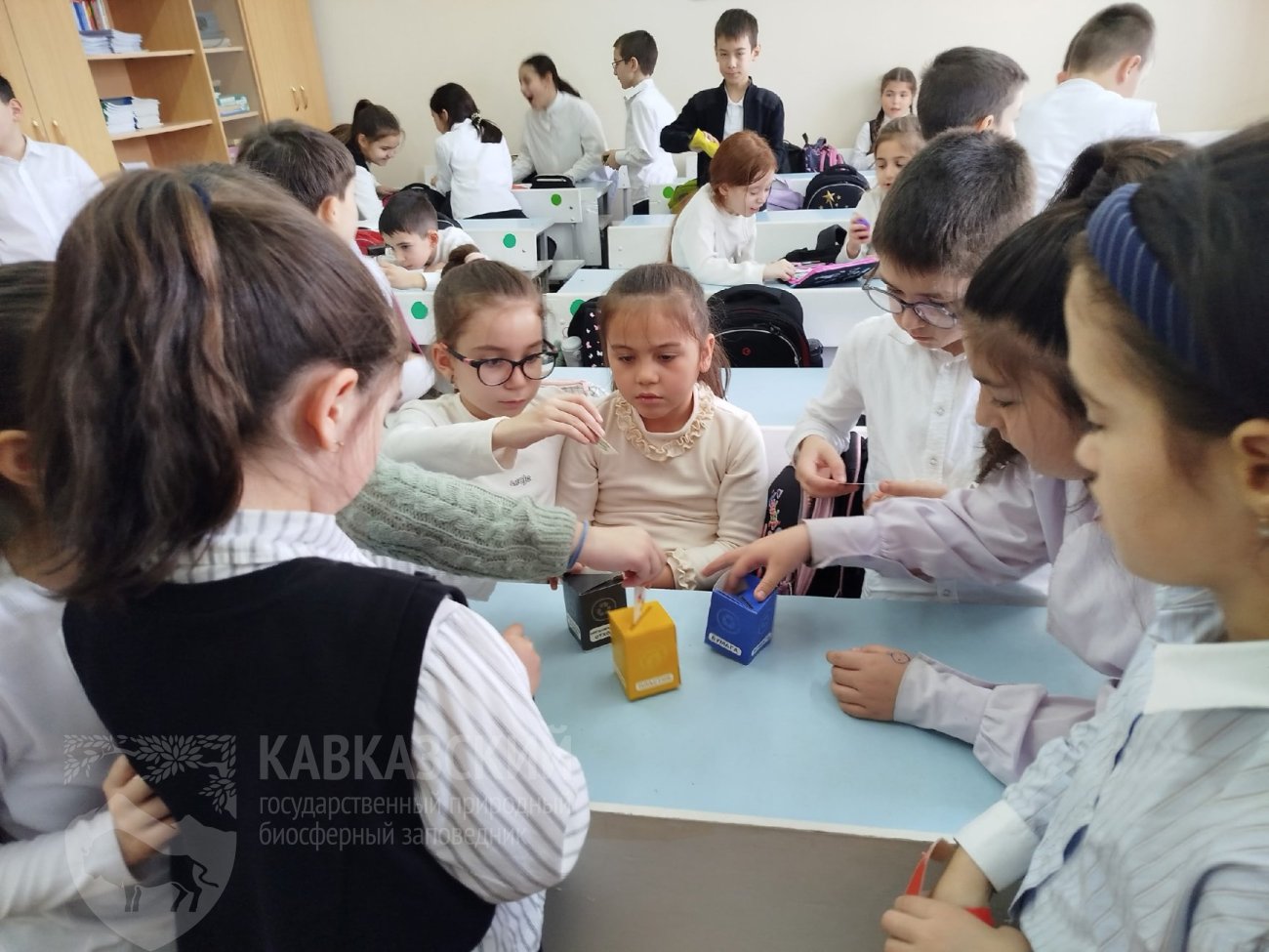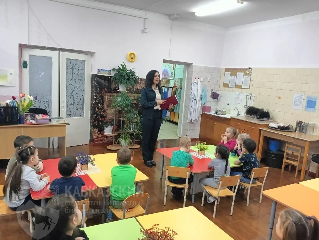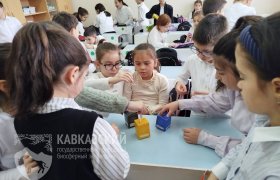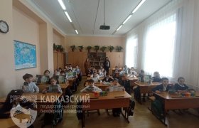 Методист по экологическому просвещению Валентина Куцая встретилась со школьниками из Адыгейской республиканской гимназии и воспитанниками детских садов г. Майкопа. На мероприятиях посвящённых одному из главных экологических праздников дети узнали о флоре и фауне Кавказского заповедника, познакомились с Красной книгой, научились сортировать мусор.