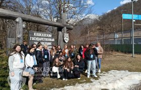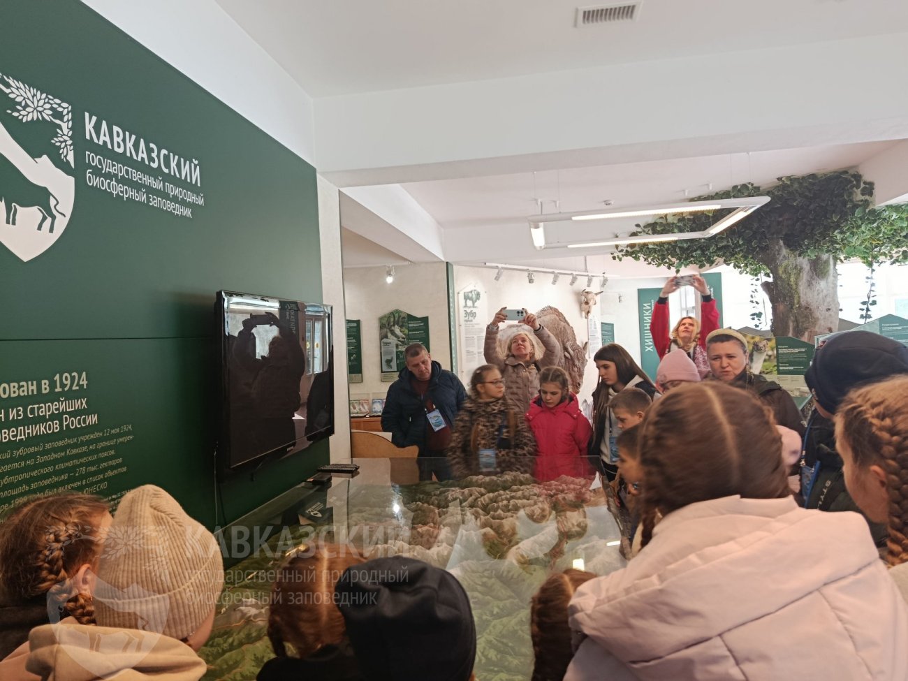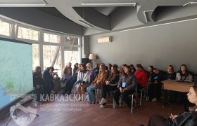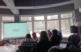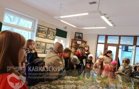 Знакомство с заповедной территорией в интерактивной форме у ребят начиналось в визит-центре «Лаура», просмотром ролика о Кавказском заповеднике. Затем наши гости с помощью макета заповедника знакомились с примерными местами обитания животных, туристическими маршрутами, имеющимися на территории Заповедника.