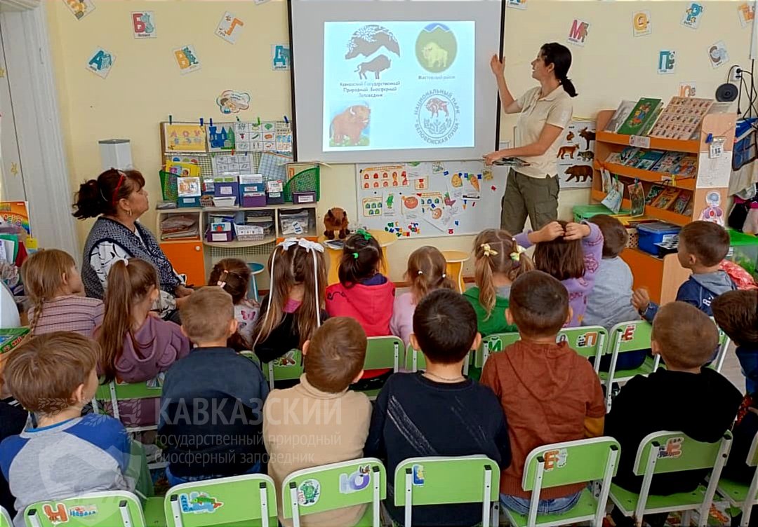 В Мостовском районе (Краснодарский край) и Урупском районе (КЧР) прошли мероприятия, посвященные Дню Зубра, который отмечается 11 октября в Кавказском биосферном заповеднике. Специалисты отдела экологического просвещения провели ряд «заповедных уроков» для школьников и воспитанников детских садов, направленных на знакомство с этим величественным символом Кавказа — горным зубром.