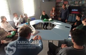 Встреча была очень позитивной и полезной. Добровольцы были отмечены благодарностями от руководства заповедника и небольшими подарками. Каждый из присутствующих поделился своим опытом волонтёрской деятельности, поделился планами на будущее. Приятно, что на встрече были учащиеся 9 класса СОШ № 6 станицы Андрюки со своим классным руководителем Светланой Михайловной Бажан. Ребята познакомились с людьми, дружбой с которыми гордится Кавказский заповедник. Быть может, в ближайшем будущем они пополнят ряды помощников заповедной страны.