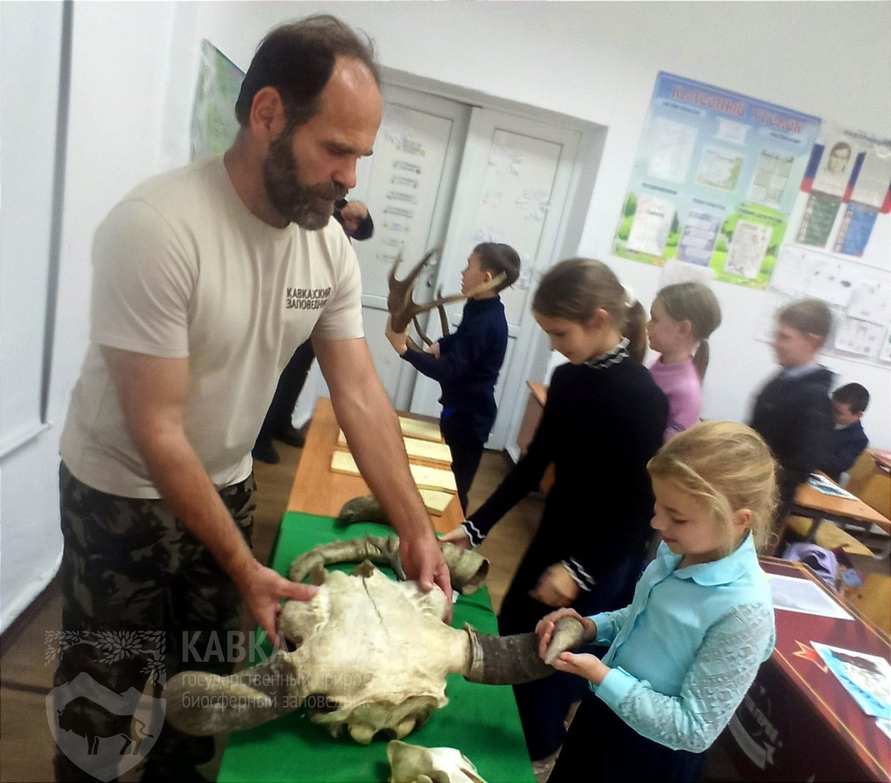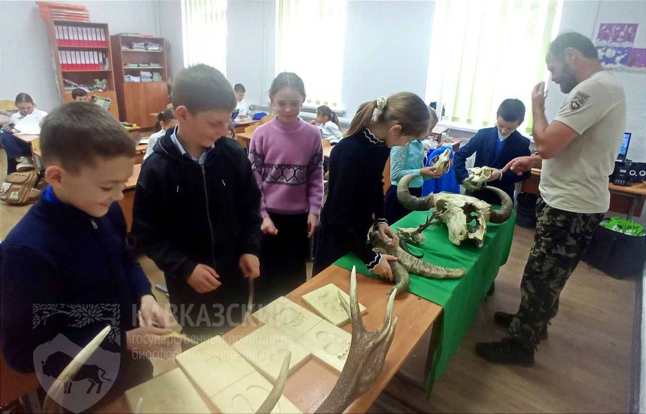 В рамках "трогательного уголка" были представлены рога кавказского благородного оленя, тура, серны, косули и зубра. Дети с восторгом ощупывали их, сравнивая размеры, формы и текстуры, пытаясь понять, как эти удивительные природные образования помогают животным в их жизни.