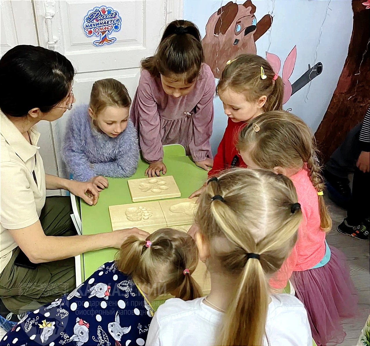Дошколята знакомились с растительным и животным миром, узнавали о неразрывных взаимосвязях в природе и о важности соблюдения правил поведения в лесу и правил добрососедства с лесными жителями. Практические занятия были разнообразны и познавательны: юные любители природы угадывали следы лесных обитателей, собирали «зоо-пазлы» и отвечали на вопросы, определяли животных по их голосам. Особый восторг вызвало знакомство с экспонатами «трогательного уголка», где все можно было изучить руками. Для самых маленьких было очень интересно представить себя в облике обитателя заповедного леса. На физкультминутке дети с радостью махали крылышками, прыгали как зайчики и рычали как настоящие леопарды.