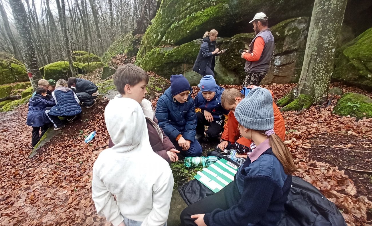 Пятиклассникам СОШ № 6 станицы Андрюки предстояло совершить небольшое путешествие на таинственную скалу Шапка. Правда ли, что когда-то здесь бушевали воды океана? Кто обитал в таинственных глубинах? И сколько лет громадным валунам, покрытым толстым слоем мха? Конечно же это не все вопросы, которые задавали любознательные школьники. Как узнать возраст дерева и чьи следы можно встретить в лесу? Оказывается, обычные школьные уроки можно превратить в увлекательнейшее занятие, и сами дети будут искать, рассуждать и находить ответы.