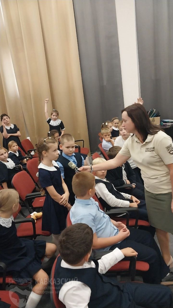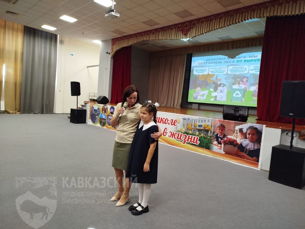 ФГБУ «Кавказский государственный заповедник», представляя одну из старшейших горно-лесных территорий страны, побывал в Славянском районе Краснодарского края. Эколого-просветительское мероприятие «Русский лес и хранители будущего» проведены 17 сентября 2025 года в средней школе № 12 г. Славянск-на-Кубани. Во время лекции дети делились воспоминаниями о красоте русского леса,узнали о его значимости для экологического баланса, роли в жизни человека, бесценного природного ресурса. Методистом Кавказского заповедника были показаны видеоматериалы о профессиях, связанных с охраной леса.