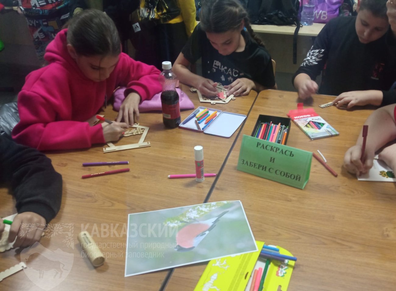 В легкой непринужденной обстановке учащиеся средней школы №6 обогатили свои знания о зимующих птицах и о правилах их прикорма. В «творческом уголке» детям была предоставлена возможность проявить свои художественные таланты, раскрасив две кормушки. Блестяще справившись с заданием, школьники забрали их с собой, чтобы повесить в школьном дворе. Теперь-то они знают какой корм надо насыпать в кормушку, чтобы привлечь синицу, а какой – чтобы привлечь снегиря.