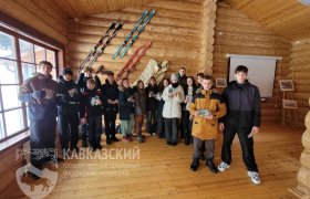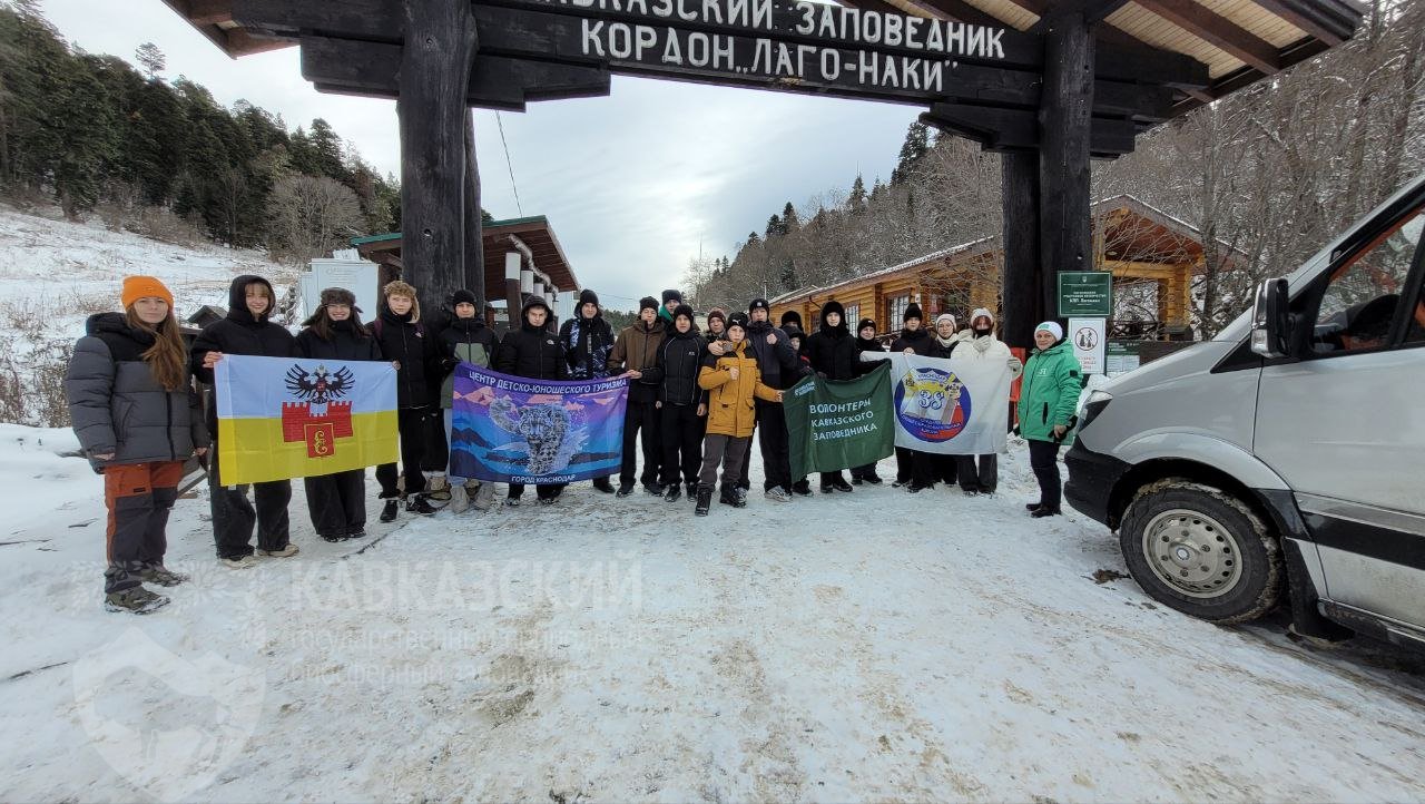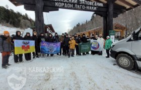 В этом году к нам приехали гости из Краснодара — преподаватели и учащиеся школы №38 имени Героя Советского Союза Татьяны Макаровой. Отдельную благодарность заповедник выражает вдохновителю и организатору этой замечательной поездки — Ивановой Юлии. Благодаря её усилиям ребята смогли не только полюбоваться зимними пейзажами, но и погрузиться в удивительный мир горной природы.