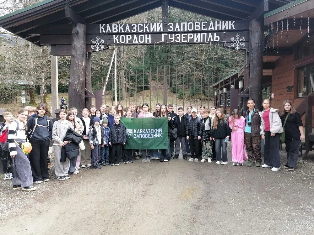 Главной целью такого интересного весеннего приключения был эколого-информационный центр «Гузерипль». Здесь гостей встречали обитатели вольеров: величественные кавказские благородные олени, покорители горных вершин серны и туры, еще совсем сонные енотовидные собаки, озорники еноты и, конечно же, великаны-зубры. Ребята посмотрели фильм «Горный зубр» из серии «Живые горы» в кинотеатре Музея Природы. Послушали экскурсию, ответили на вопросы викторины о Кавказском заповеднике. А завершением такого захватывающего путешествия был поход по Тропе леопарда, где все надеялись хотя бы увидеть следы этой самой редкой кошки в России.