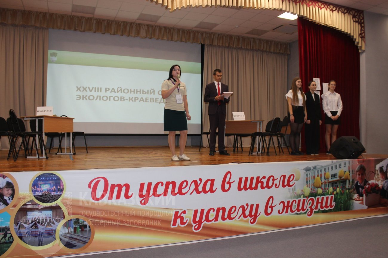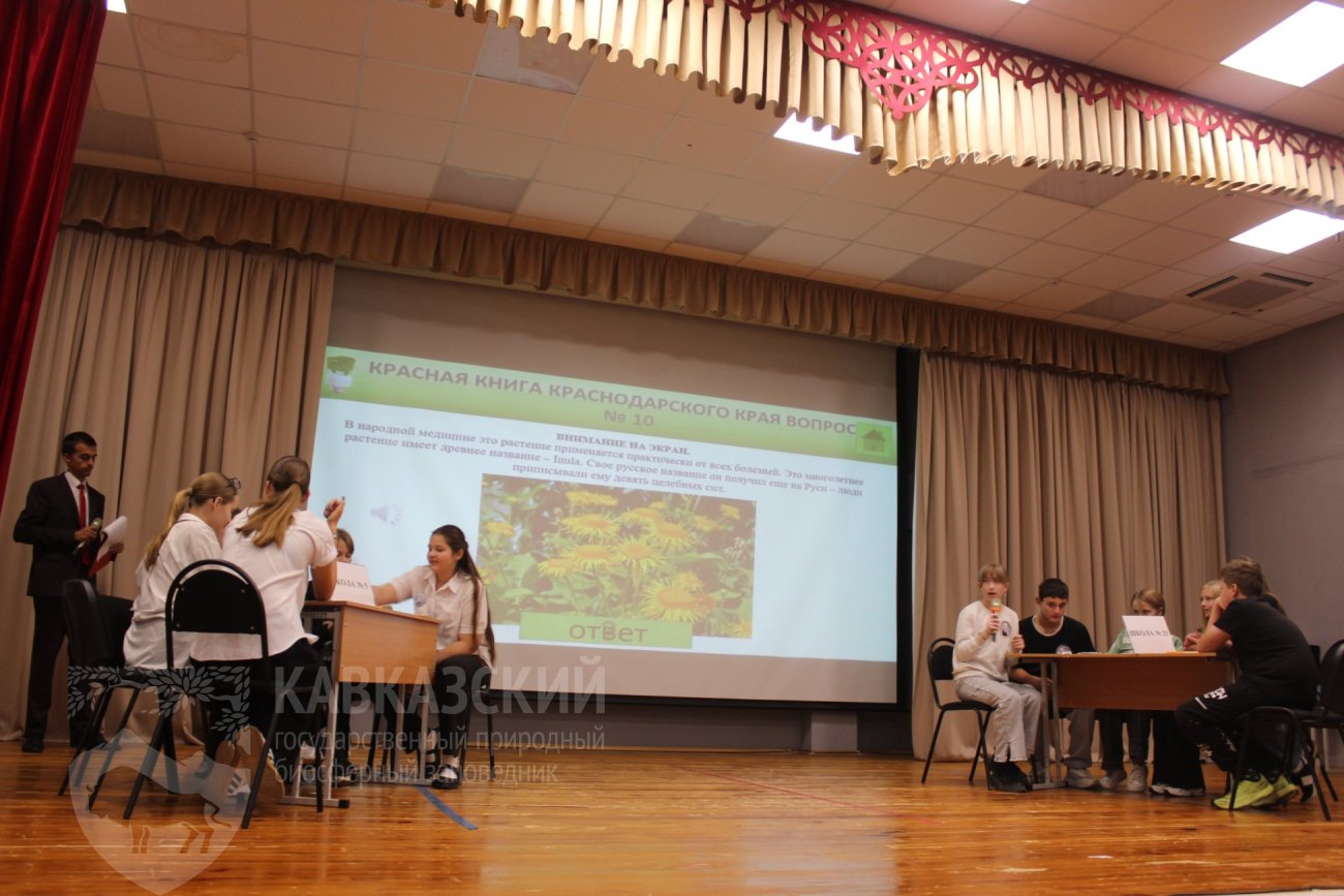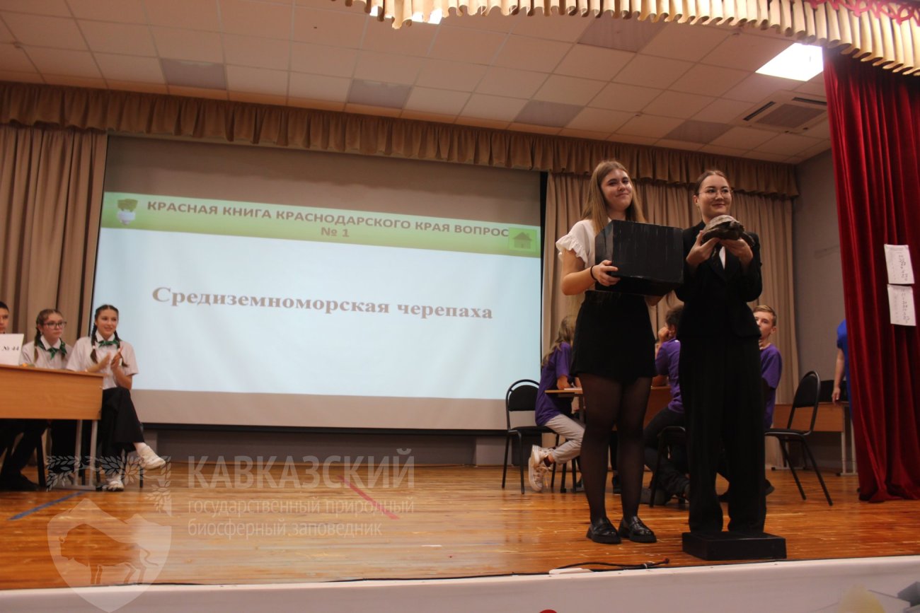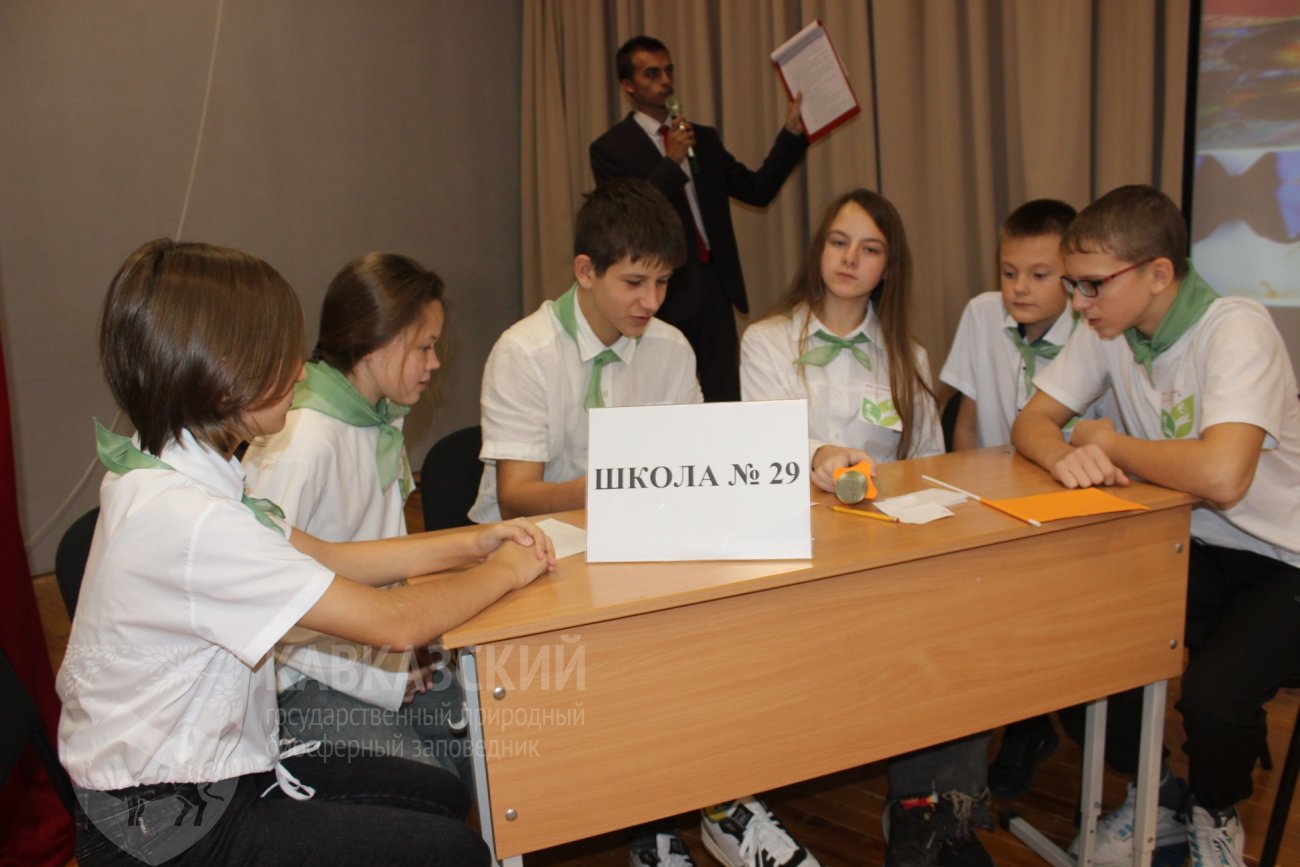 В конкурсную программу входила интеллектуальная игра, в ходе которой 19 школьных команд испытывали свои знания в области орнитологии, энтомологии, ихтиофауны, Красной книги Краснодарского края, переработки вторсырья, космосе и животных на защите Родины. Группы болельщиков активно поддерживали свои команды, принося дополнительные баллы.
