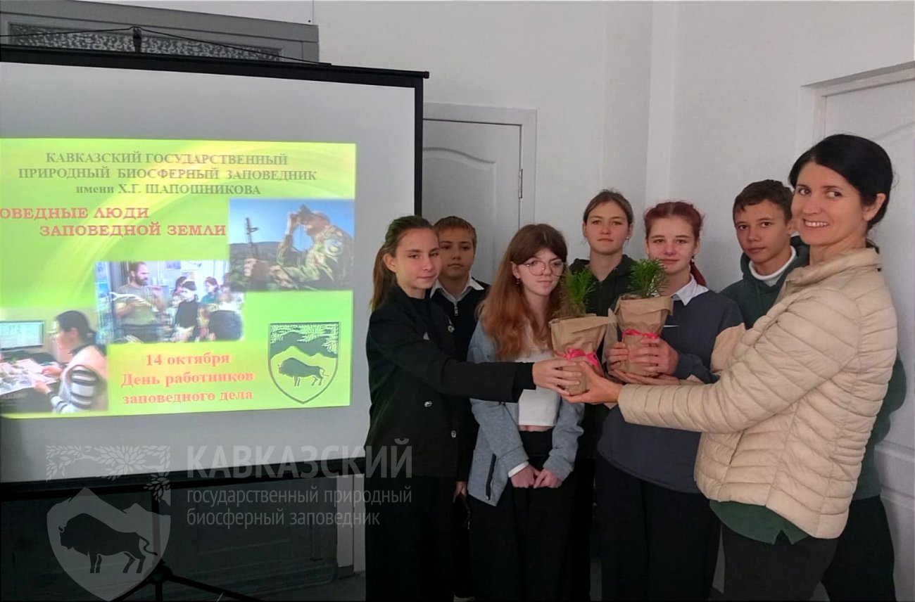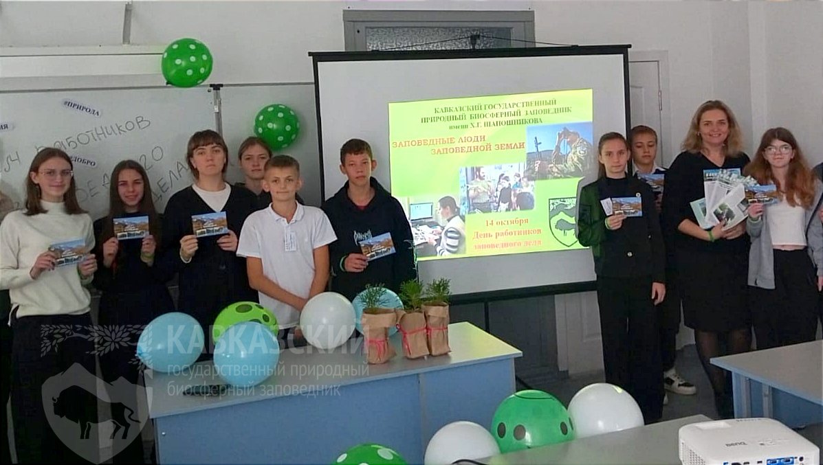 Специалисты отдела экологического просвещения Кавказского заповедника совместно с активными участниками школьного экосовета (руководитель Гороховик Виктория Васильевна) школы №3 села Шедок Мостовского района, 14 октября отметили профессиональный праздник – День работников заповедного дела.