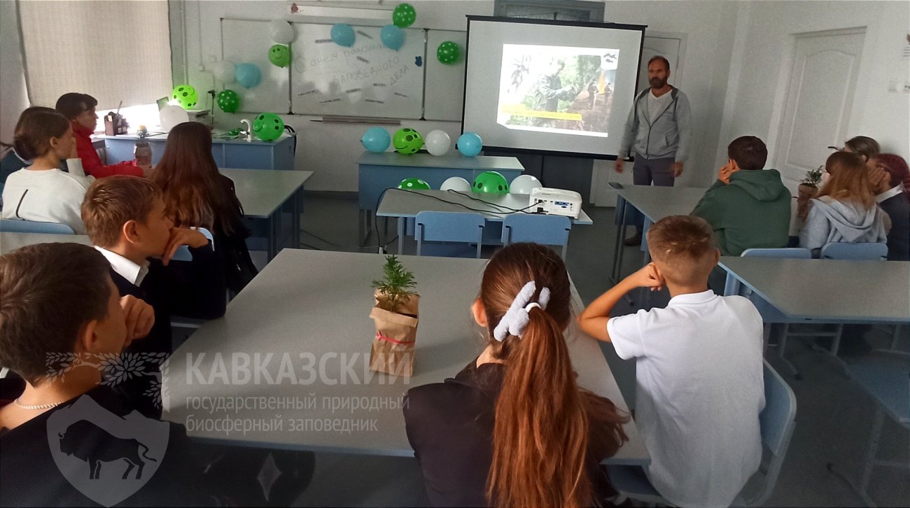Кульминацией праздника, как и полагается в торжественной обстановке, стало трогательное поздравление. Ребята, полные искренних эмоций, обратились к сотрудникам Кавказского заповедника с теплыми словами благодарности и добрыми пожеланиями. И, конечно же, в этот день юные экологи преподнесли особенный подарок. В знак своей приверженности делу охраны природы и в честь праздника, школьники подарили сотрудникам заповедника саженцы туи, которые они сами вырастили в своем школьном питомнике. Этот символичный жест продемонстрировал не только заботу о природе, но и готовность ребят принимать активное участие в ее сохранении.