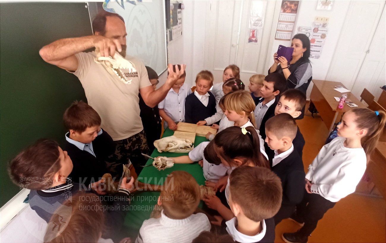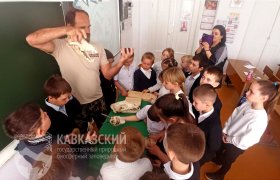 Особый восторг у школьников вызвало знакомство с обитателями заповедных мест. Могучие зубры, грациозные серны, благородные олени – разве можно не влюбиться в этих прекрасных животных. Многие из них занесены в Красную книгу, и именно заповедник является для них главным убежищем. Не менее познавательной стала часть, посвящённая работе сотрудников заповедника. Ребята выяснили, какие задачи стоят перед ними для сохранения биоразнообразия Кавказских гор.