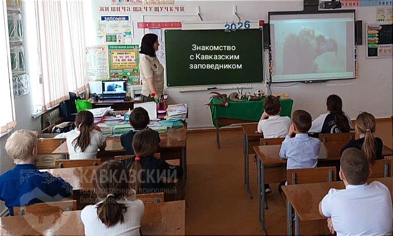 В начальных классах школы №3 села Шедок прошёл заповедный урок-знакомство. Встреча, организованная сотрудниками Кавказского заповедника для юных любителей природы, стала настоящим открытием: ребята не просто слушали, а отправились в захватывающую виртуальную экспедицию по уникальным уголкам особо охраняемой природной территории Западного Кавказа.