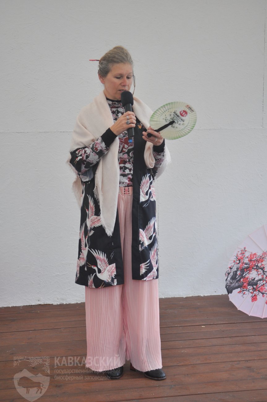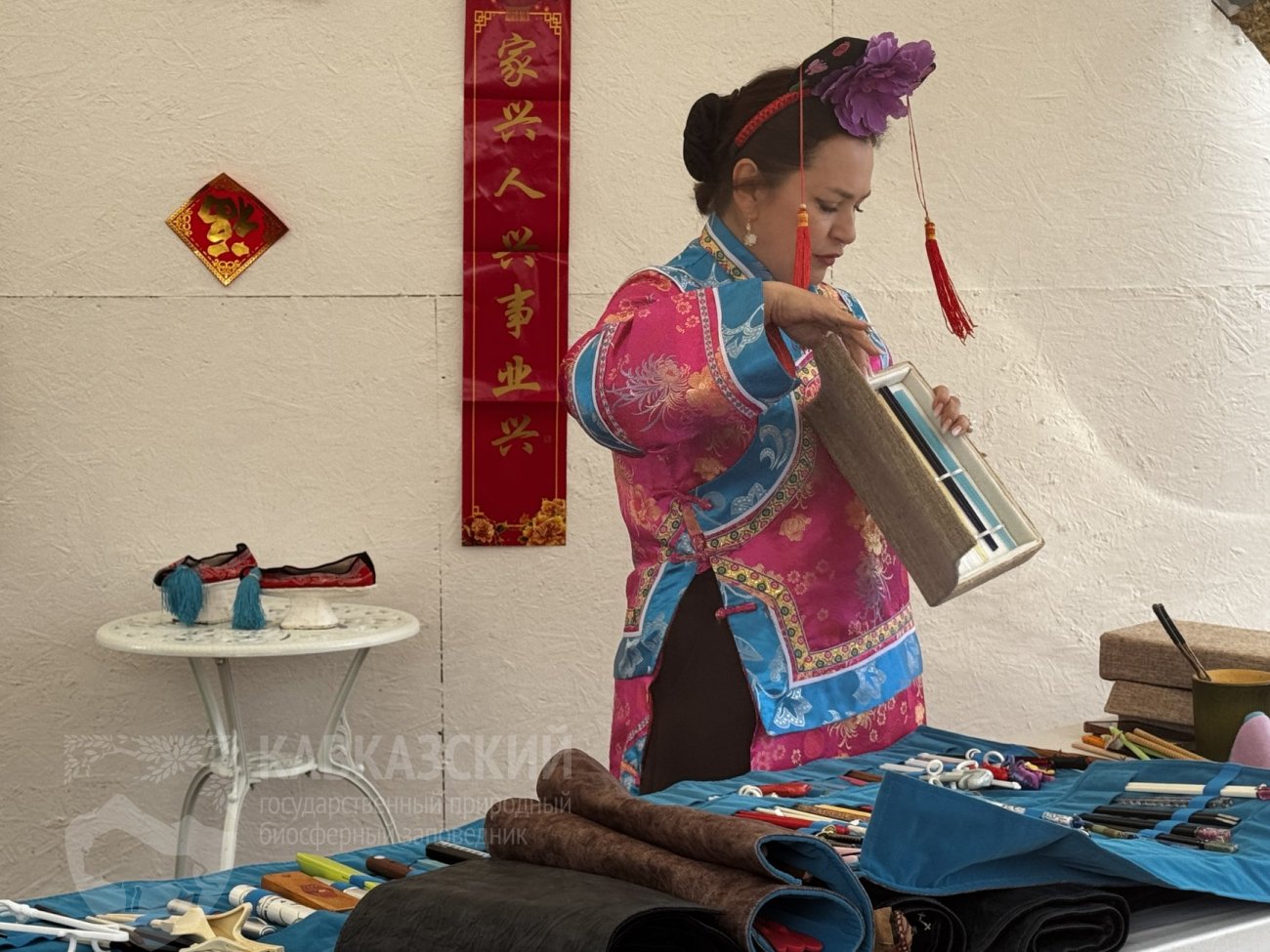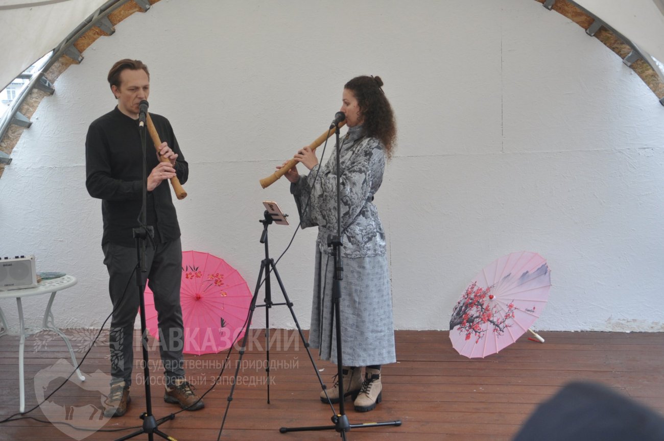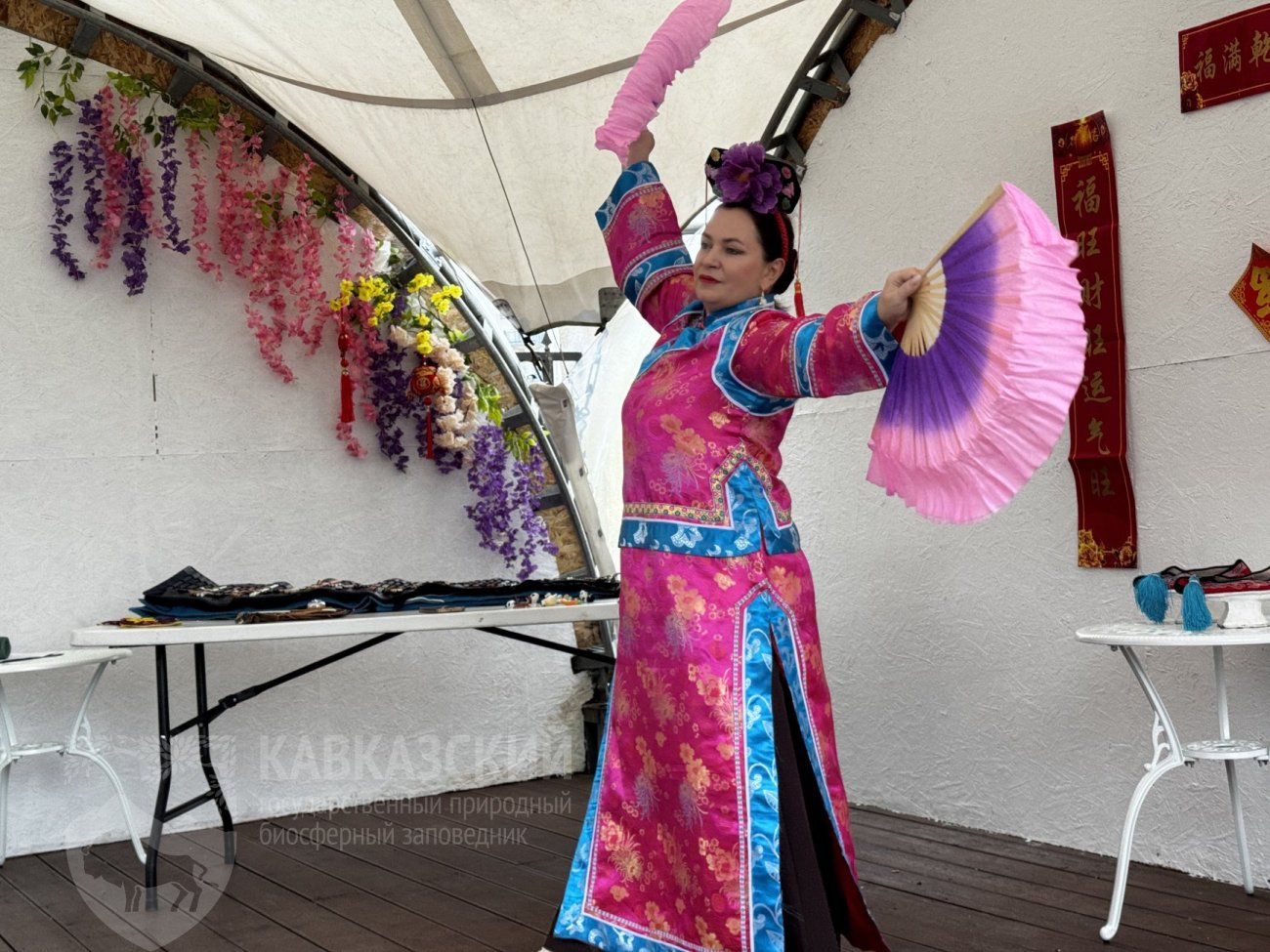 Культурную программу Фестиваля дополнили японские танцы в исполнении воспитанников Центра детского и юношеского туризма Сочи. А коллектив русской песни и танца Алены Ларькиной исполнил всем известные русские песни на китайском языке. Литературный клуб Сочи и дуэт “Сияние” погрузил гостей в медитативный ритм японских стихов хокку и танка под аккомпанемент бамбуковых флейт сяку хати (традиционный японский музыкальный духовой инструмент). А специалист по китайской культуре, переводчик и коллекционер Ольга Диканько открыла для слушателей удивительный мир палочек, которые эволюционировали из столового прибора в произведение искусства и даже предмет роскоши. Ее коллекция редко покидает стены дома, но для парка “Южные культуры” коллекционер сделала исключение.