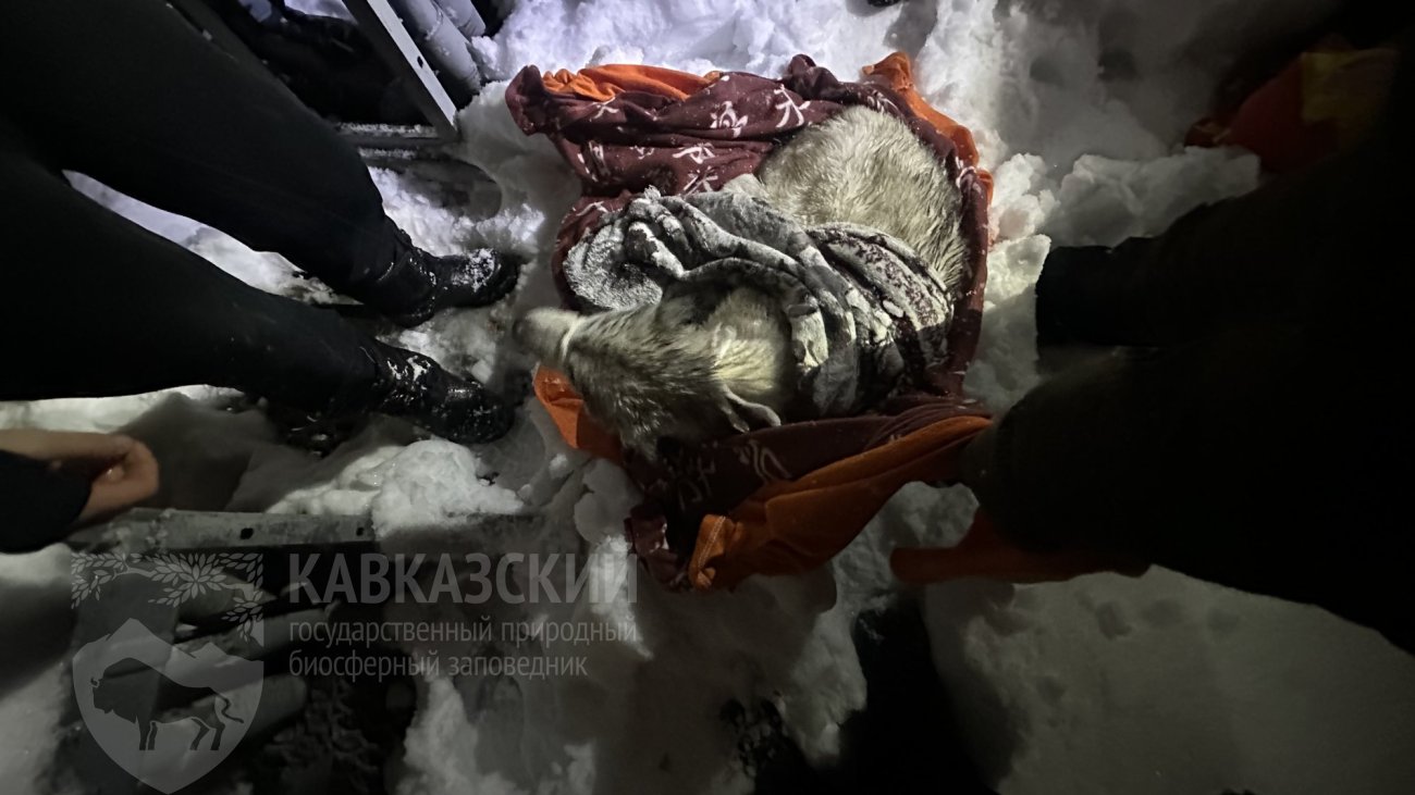 Сотрудники Кавказского заповедника и Сочинского национального парка обратились к сотрудникам железнодорожной станции с просьбой оказать содействие в спасении зверя, взяли все необходимое для транспортировки животного и отправились на место происшествия. Как выяснилось за волка очевидцы приняли сибирскую хаски. Собака действительно получила травмы, не вставала на лапы и очень замерзла. Участники спасательной операции соорудили из пледов подобие гамака, зафиксировали животное и донесли до станции. В это же время на станцию Роза Хутор приехали владельцы спасенной хаски. Молодые люди разыскивали свою сбежавшую собаку и прочитали пост в социальных сетях о пострадавшем животном. Сотрудники РЖД и природных территорий передали собаку владельцам.