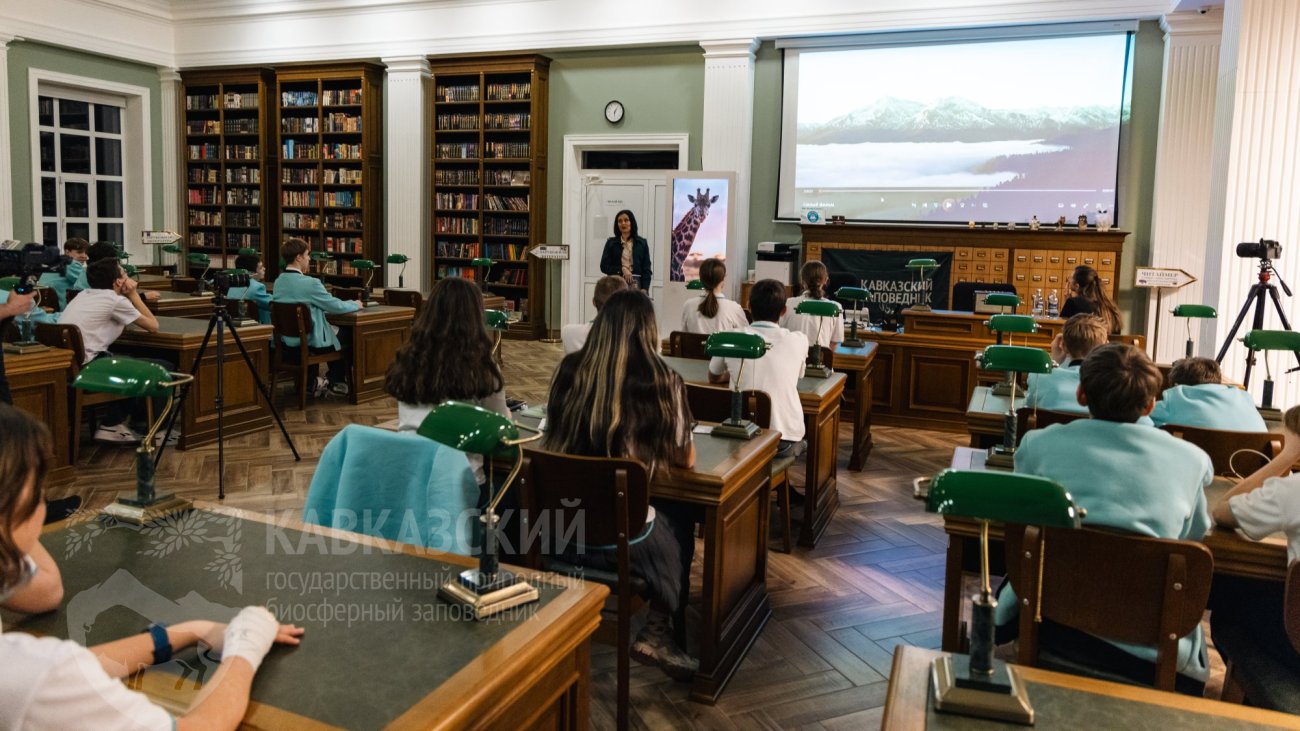 Методист по экопросвещению Валентина Куцая представила лицеистам научные исследования и историю Кавказского заповедника. На интерактивном занятии «Практика экопросвещения: как заинтересовать школьника» каждый участник смог попробовать свои силы в научных исследованиях, узнать как участвовать в полевых работах, учетах, волонтерстве и научных экспедициях на территории Кавказского заповедника.