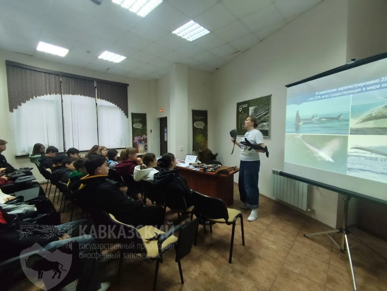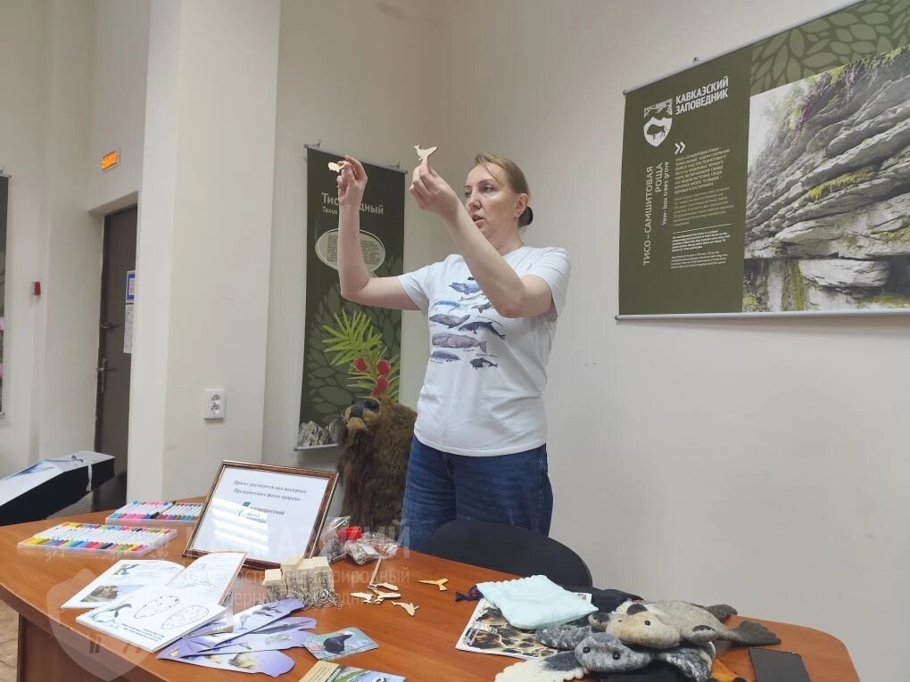 Мы не просто слушали — мы чувствовали. Анна привезла с собой частичку той далекой, загадочной земли. Каждый из нас смог прикоснуться к настоящему усу кита исполина — представьте себе эту мощь, проходящую через пальцы. А следом — самое нежное впечатление: мех калана. Вы знали, что это самый пушистый зверь на планете? На один квадратный сантиметр его шкурки приходится до 100 тысяч волосков! Убедиться в этом можно было только одним способом — дотронуться.