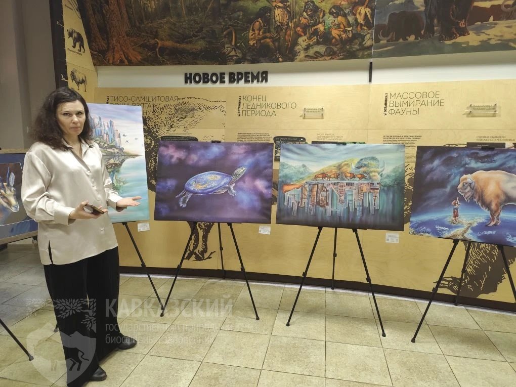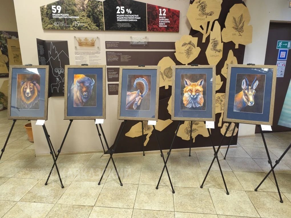 На выставке — 18 картин, посвящённых животным Кавказа и его удивительной природе. Зубры и олени, серны и медведи, горные пейзажи и лесные уголки — каждая работа дышит любовью к заповедному миру.