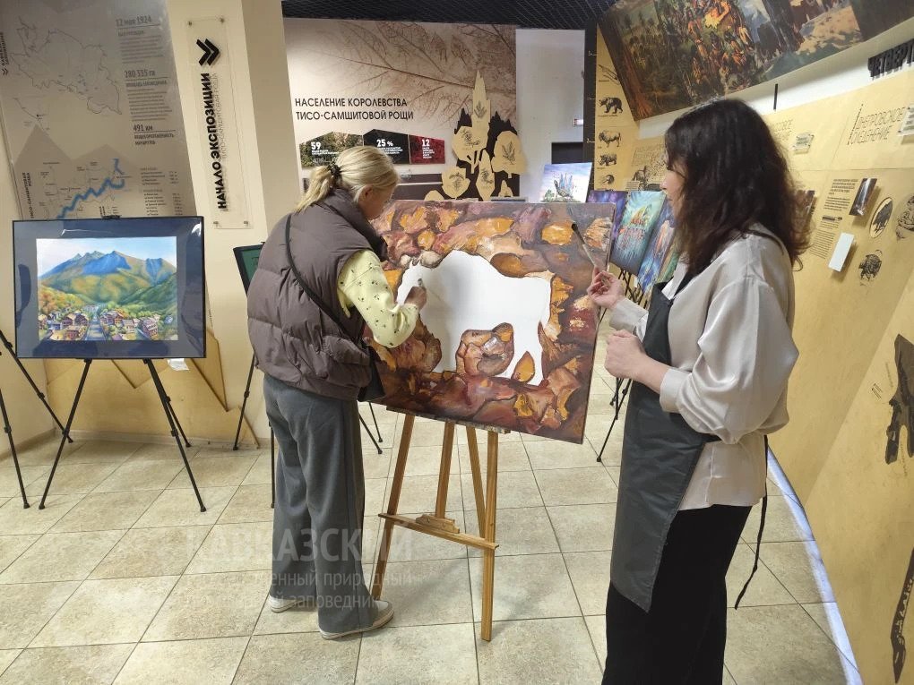 Самым активным посетителям повезло вдвойне: под руководством художницы они сами приняли участие в создании картины — коллективного полотна, которое стало символом единства искусства и природы.